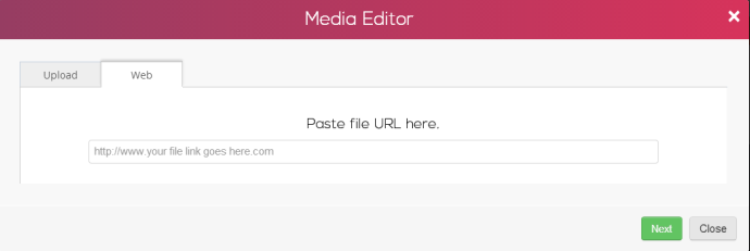 * On this screen, you can upload a link to a flash file or upload the flash file to the site.
